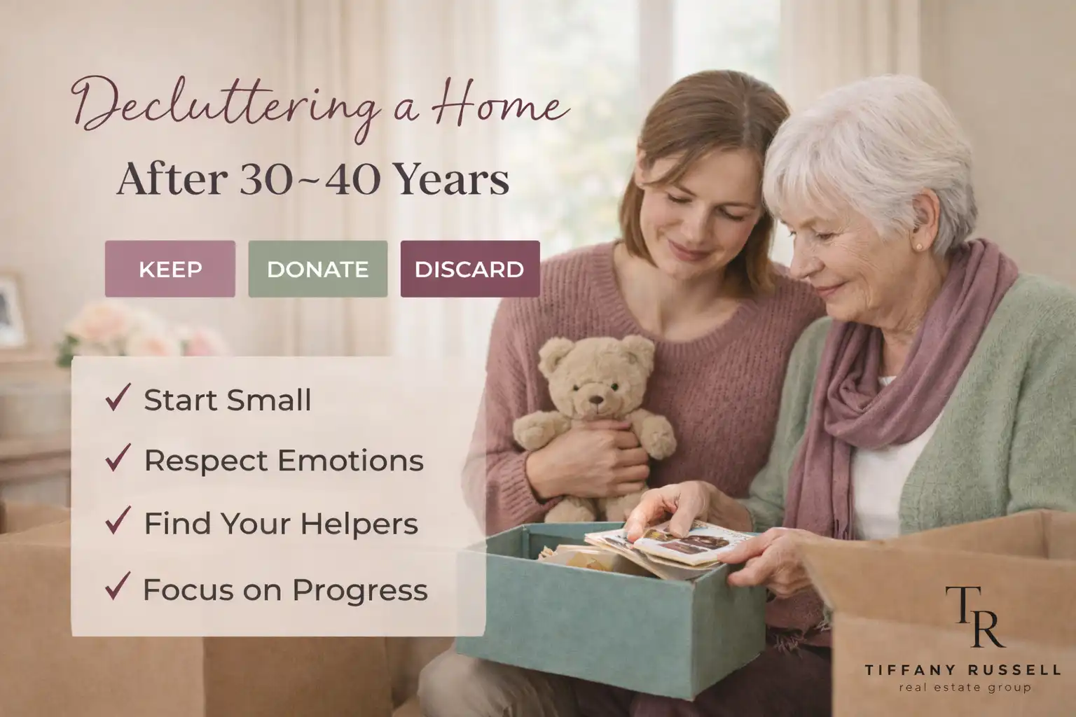 Decluttering a home filled with decades of memories is one of the most challenging parts of helping parents downsize. It’s not just a physical task, it’s an emotional one, for everyone involved.