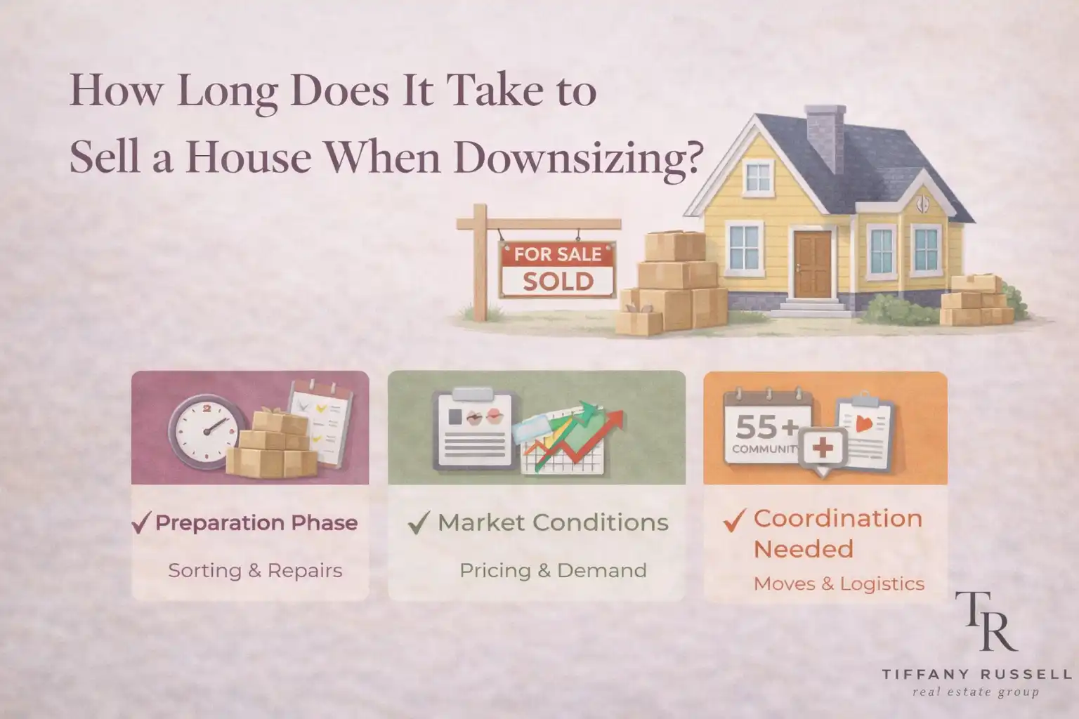 When adult children help their parents downsize, one of the first questions that comes up is timing. How long will this take, and how do we plan without feeling rushed? Unlike a typical home sale, downsizing often involves more moving parts, which means timelines need to be handled thoughtfully.